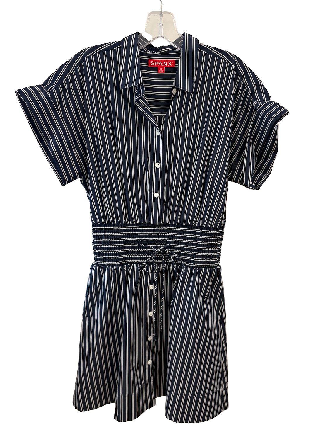 Poplin Smocked Mini Shirt Dress, Dbl Pinstripe Tn Cw