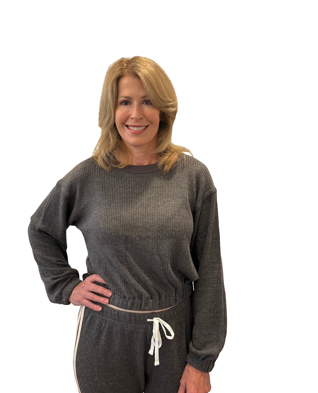 Drop Shoulder L/S Elastic Hem Tee, Charcoal