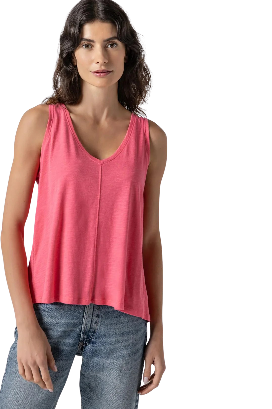 Shirred Back V-Neck Tank, Punch