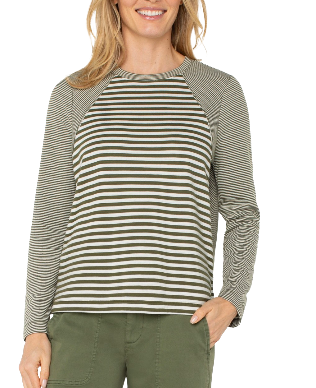 Long Slv Crew Knit Top w/ Seaming, Frst Shd/Wht St
