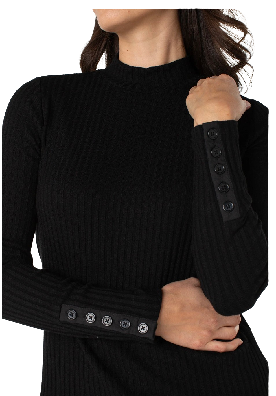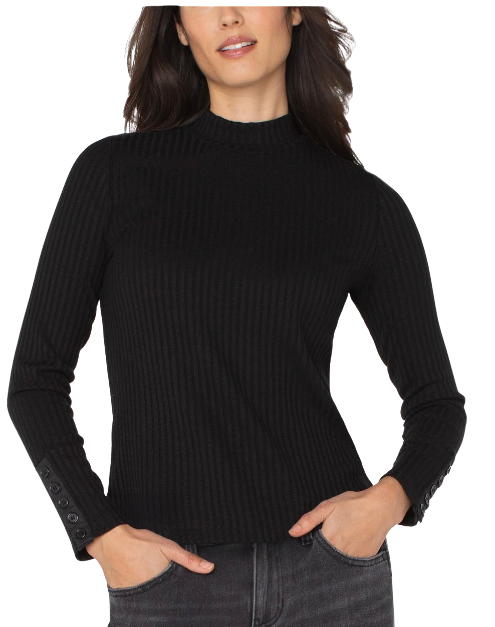 LS Mock Neck Knit Top, Black