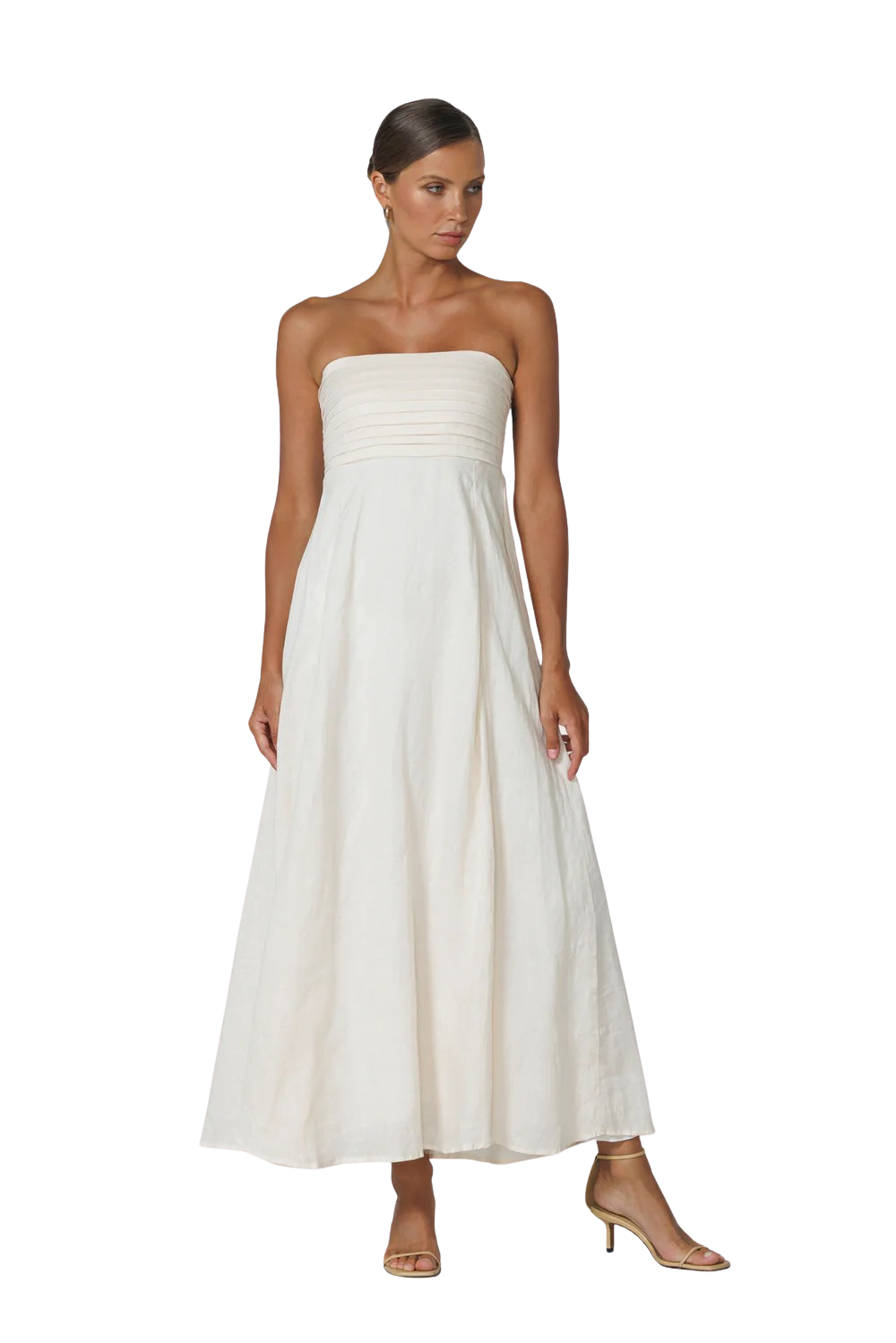 Talia Pintuck Linen Maxi, Chalk