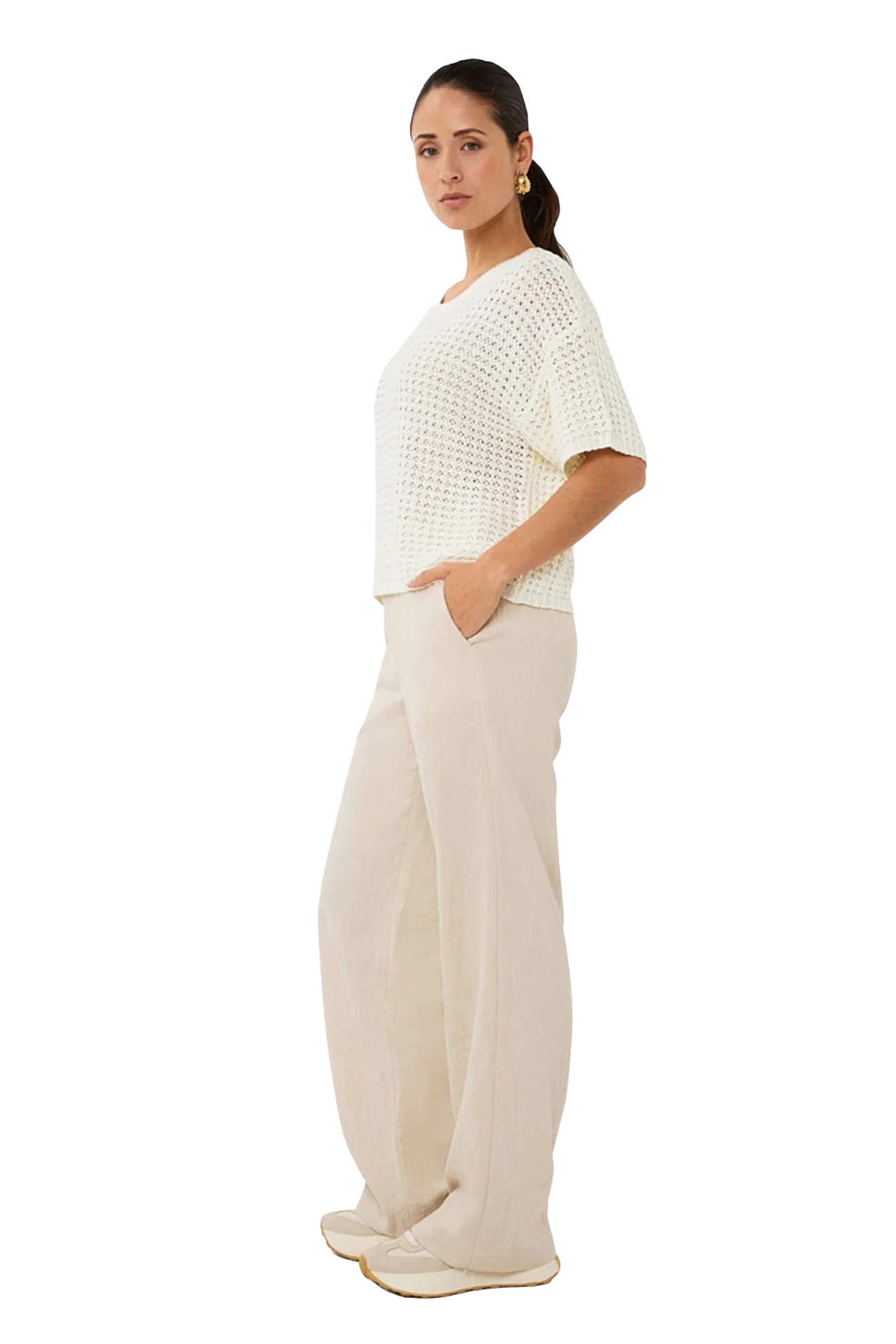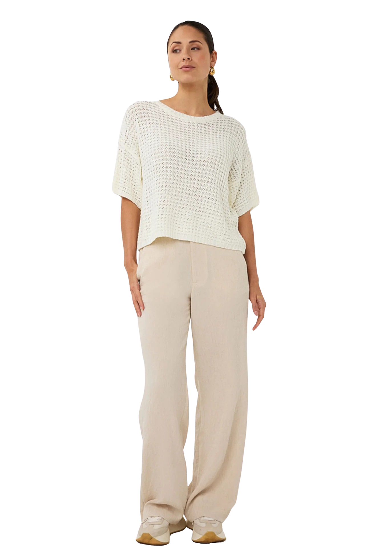 Open Knit S/S Sweater, Off White