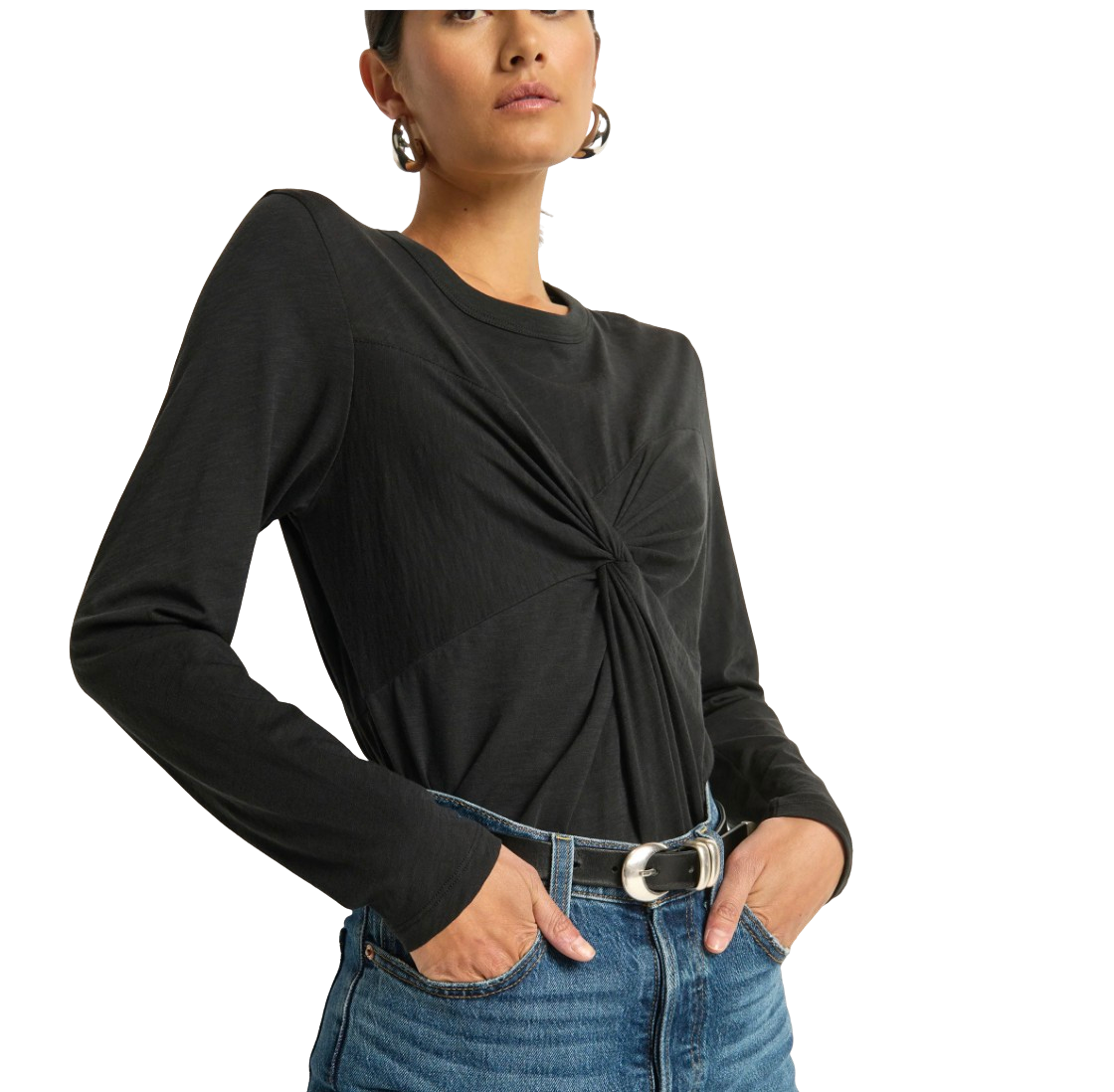 Marion Twist Front Tee, Jet Black
