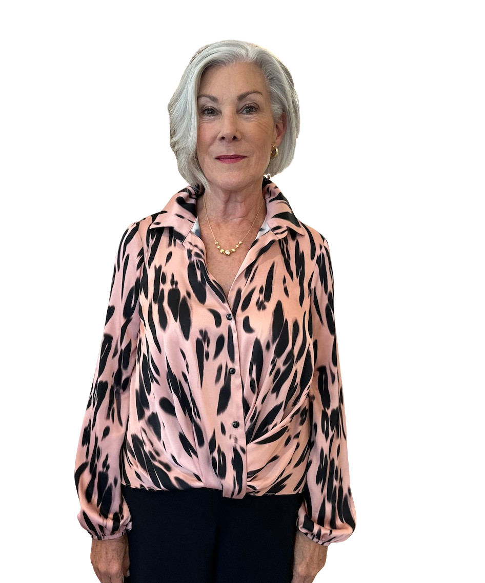 Recycled Satin Animal Print Draped Top, Pink/Black